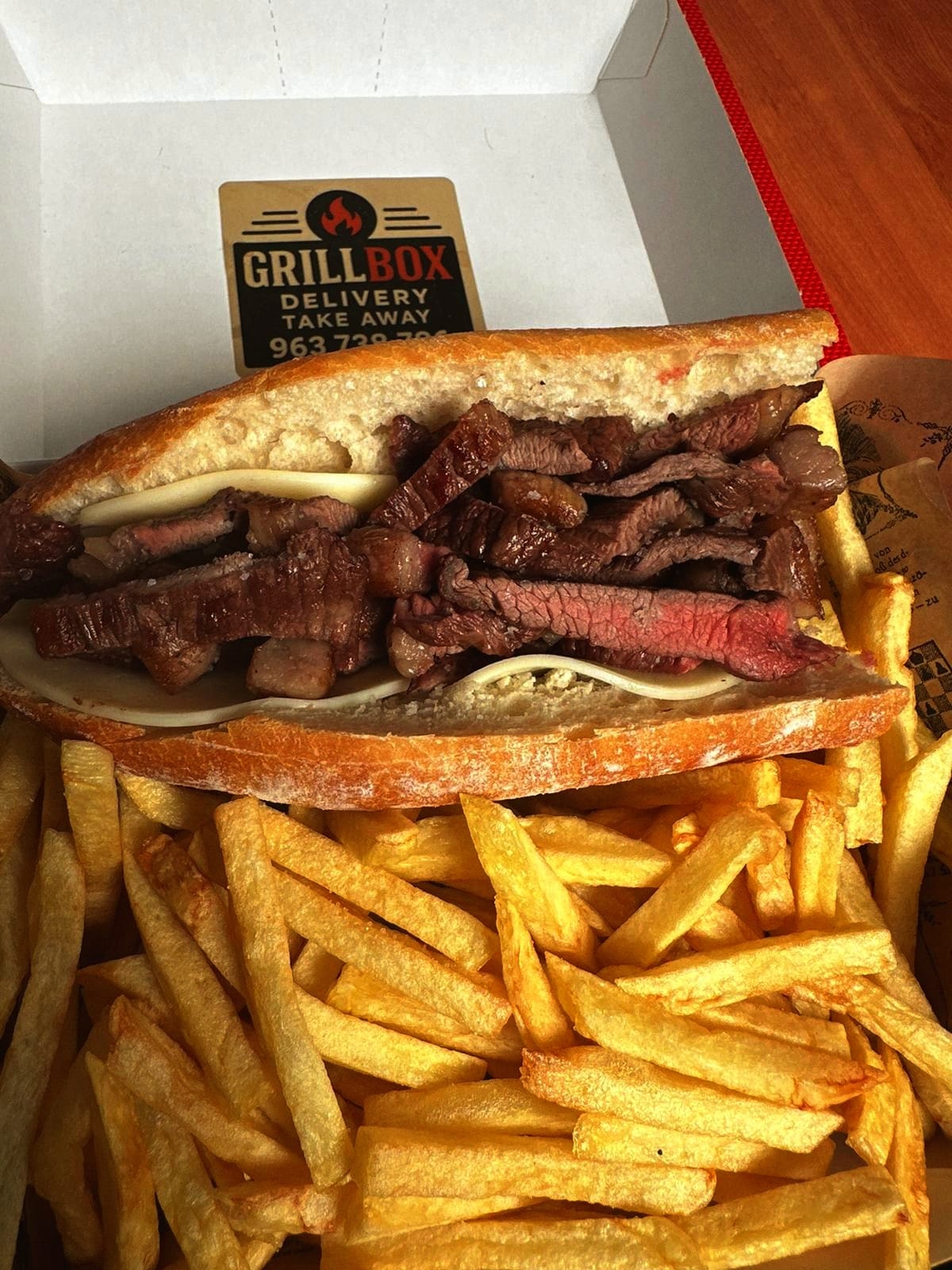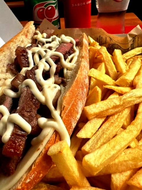 Pão rústico, mussarela e picanha grelhada + batata frita